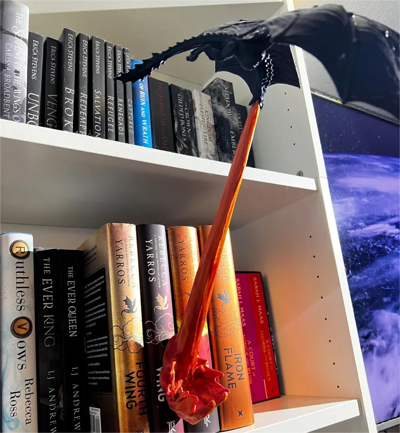 Add this one-of-a-kind Dragon Flame Book Corner to your library/bookshelf to add a special fantasy touch to your decor. It will add an extraordinary look and feel every time you see it!
