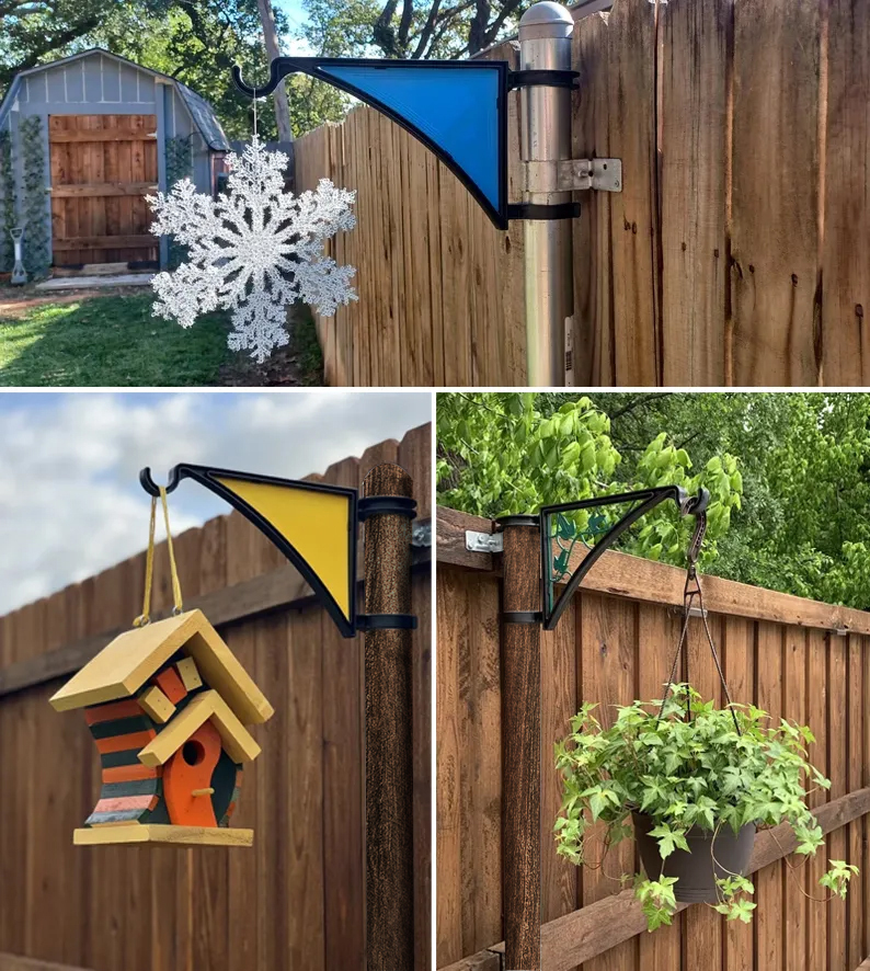 Our Domiple Hangs EZ fence post hanger requires no tools to install on your metal fence posts, three simple steps for installation and you’ll be on your way to making your yard an oasis.