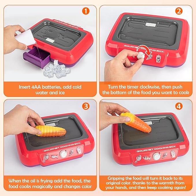 Domiple Deep Fryer Toy Kitchen Play Set is designed like a real deep fryer, with a small size and perfect for playing. 4 different baking modes, it is a good choice for kids to play and create hours of fun time!