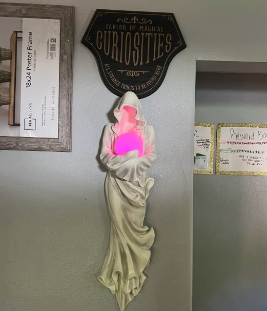 The ghost holding the lamp is hand-carved with high-quality resin material for long-term use. This perfect size of 8.5"x6.1"x32.25" is the best choice for the walls of rooms and living rooms