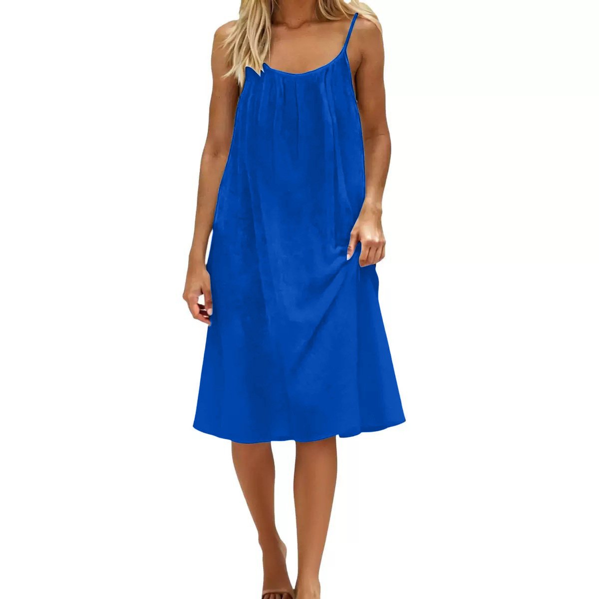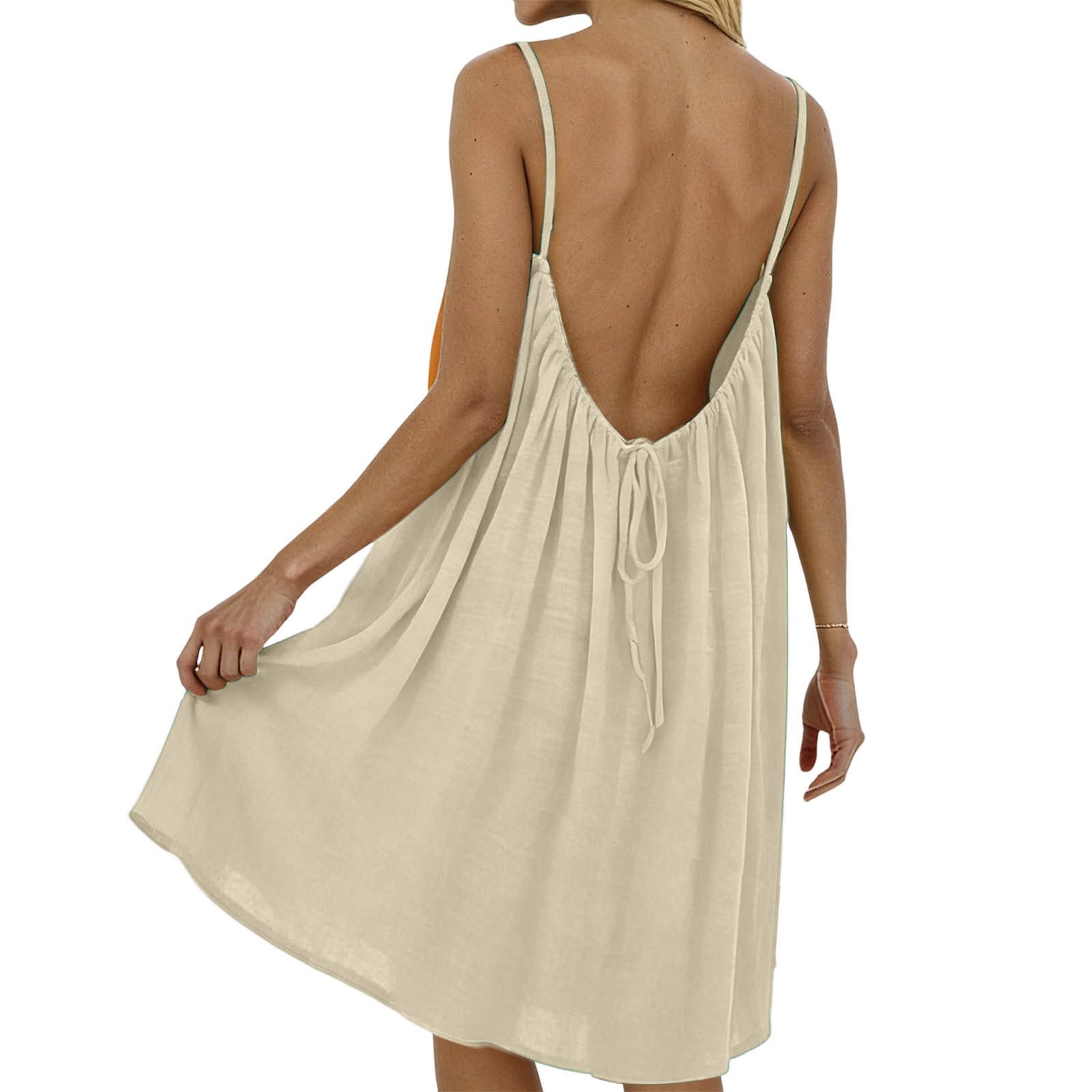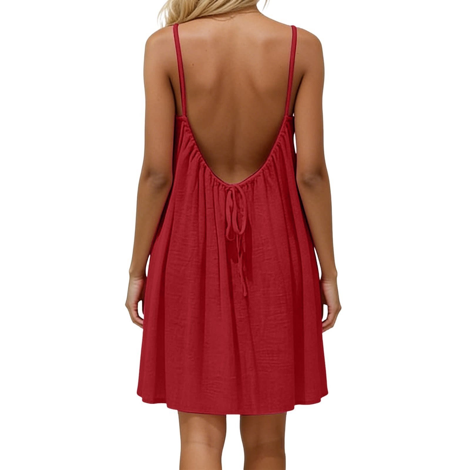 Women's Backless Cami Dress | Loose Vacation & Lounge Dress with Flowing Pleated Skirt