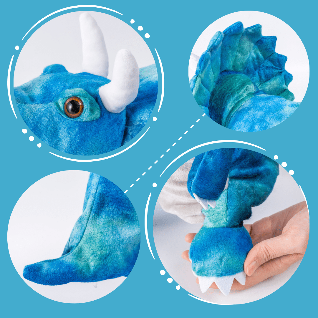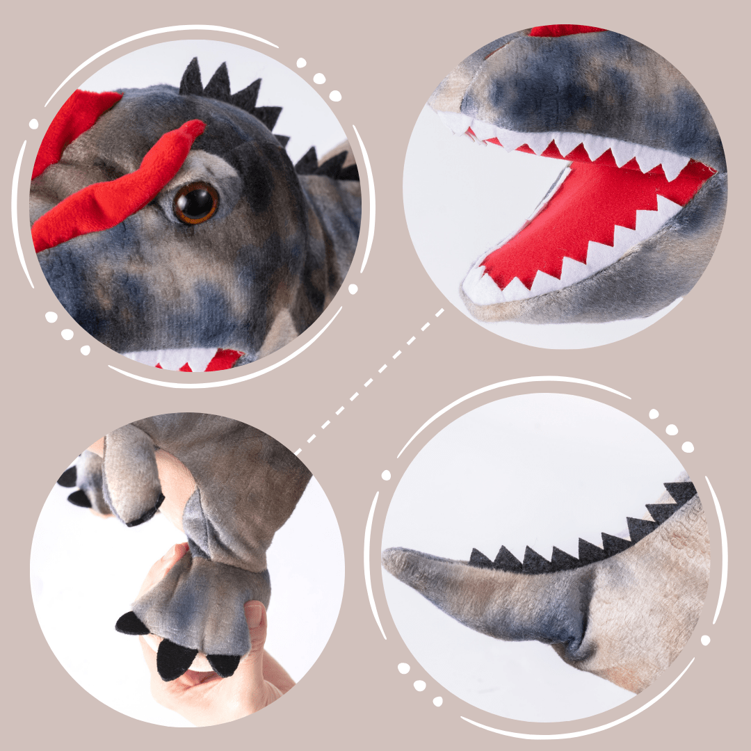 Bored with simple stuffed animals? Would you like to try this dinosaur hand puppet? Strong operability flexibility, quite exercise children's hand-eye coordination ability, come play easy cosplay with hand!