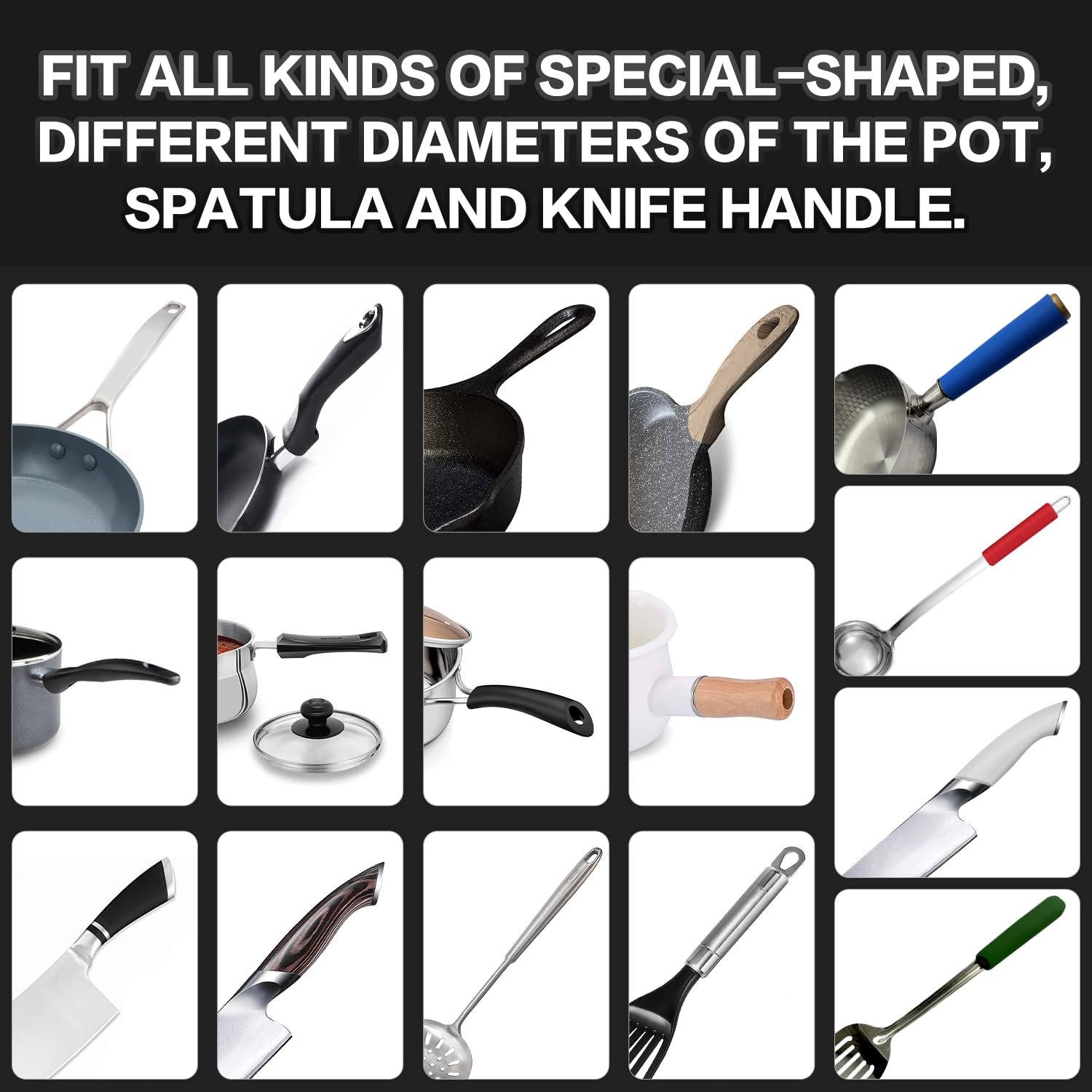 Convenient Installation: Installing our cast iron handle sleeve is incredibly simple. The silicone pan handle sleeve protectors fit various irregularly shaped handles such as pot handles, utensil handles, ladle handles, knife handles, and more. Just slide them on effortlessly and then enjoy comprehensive protection.